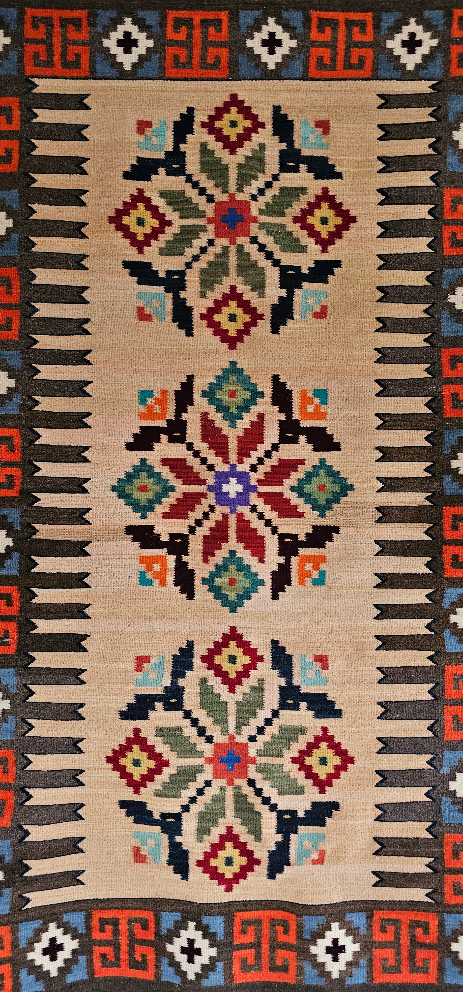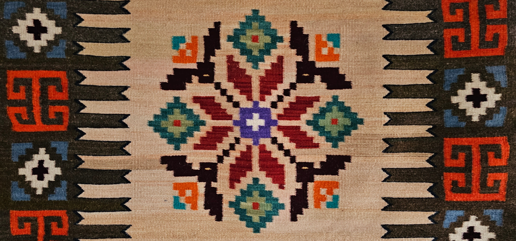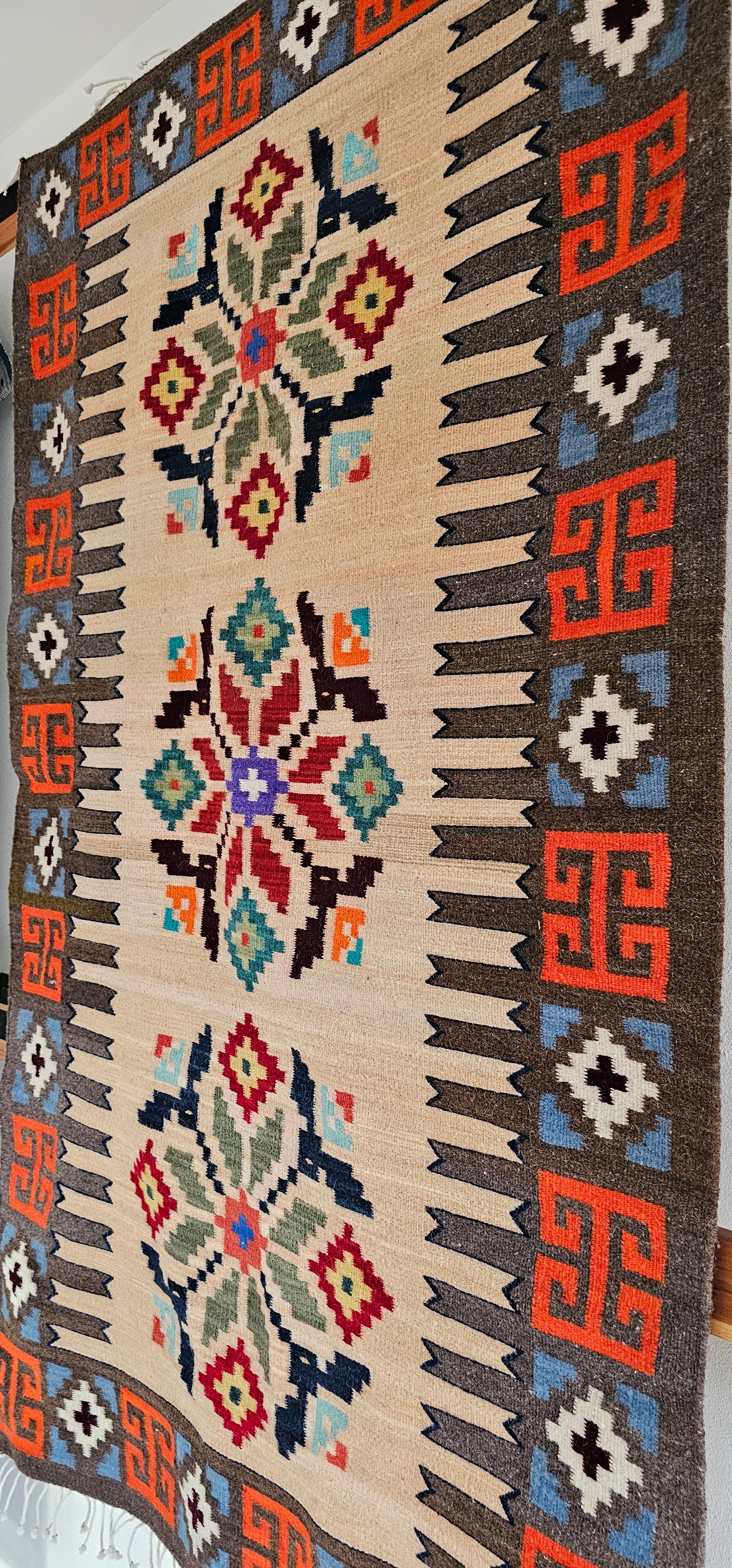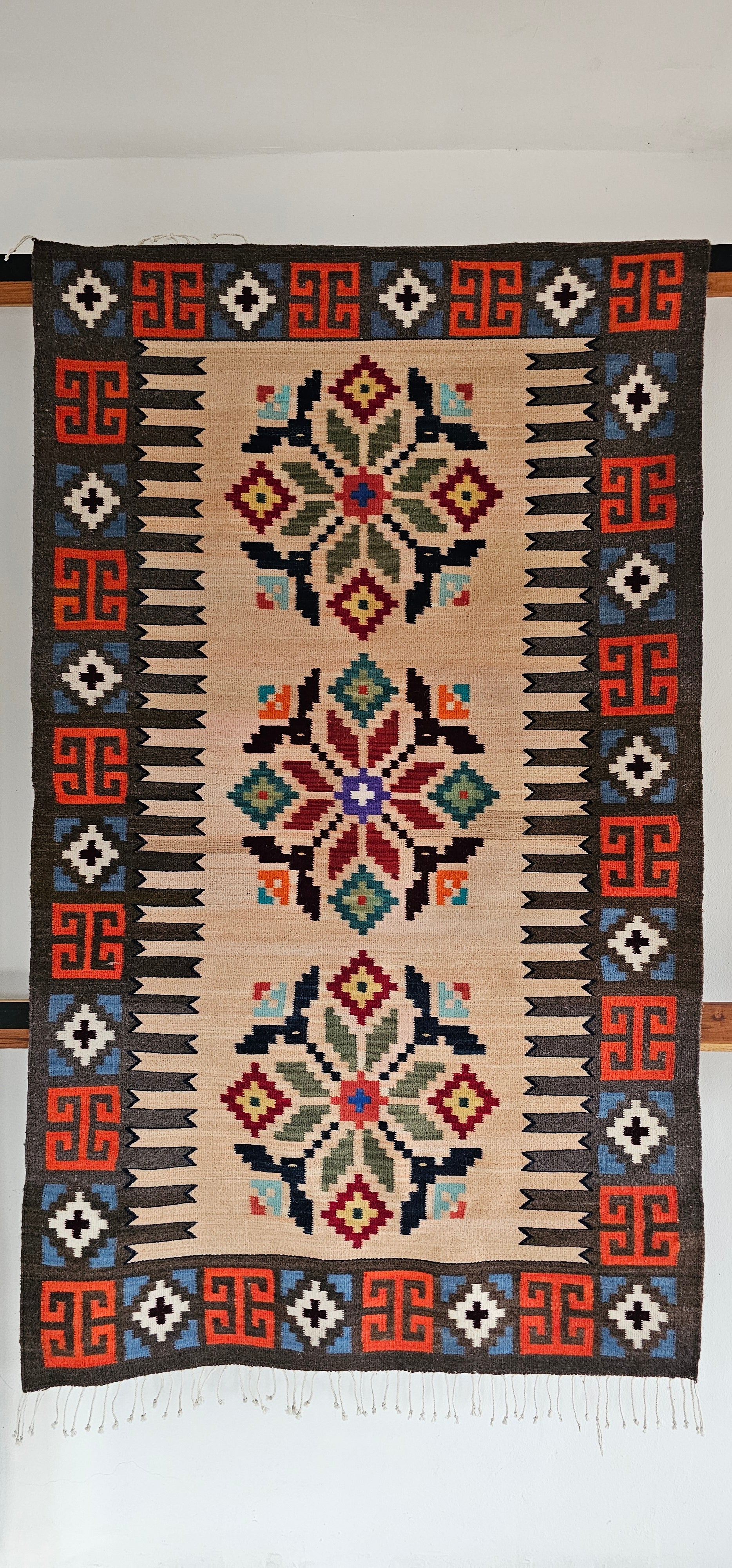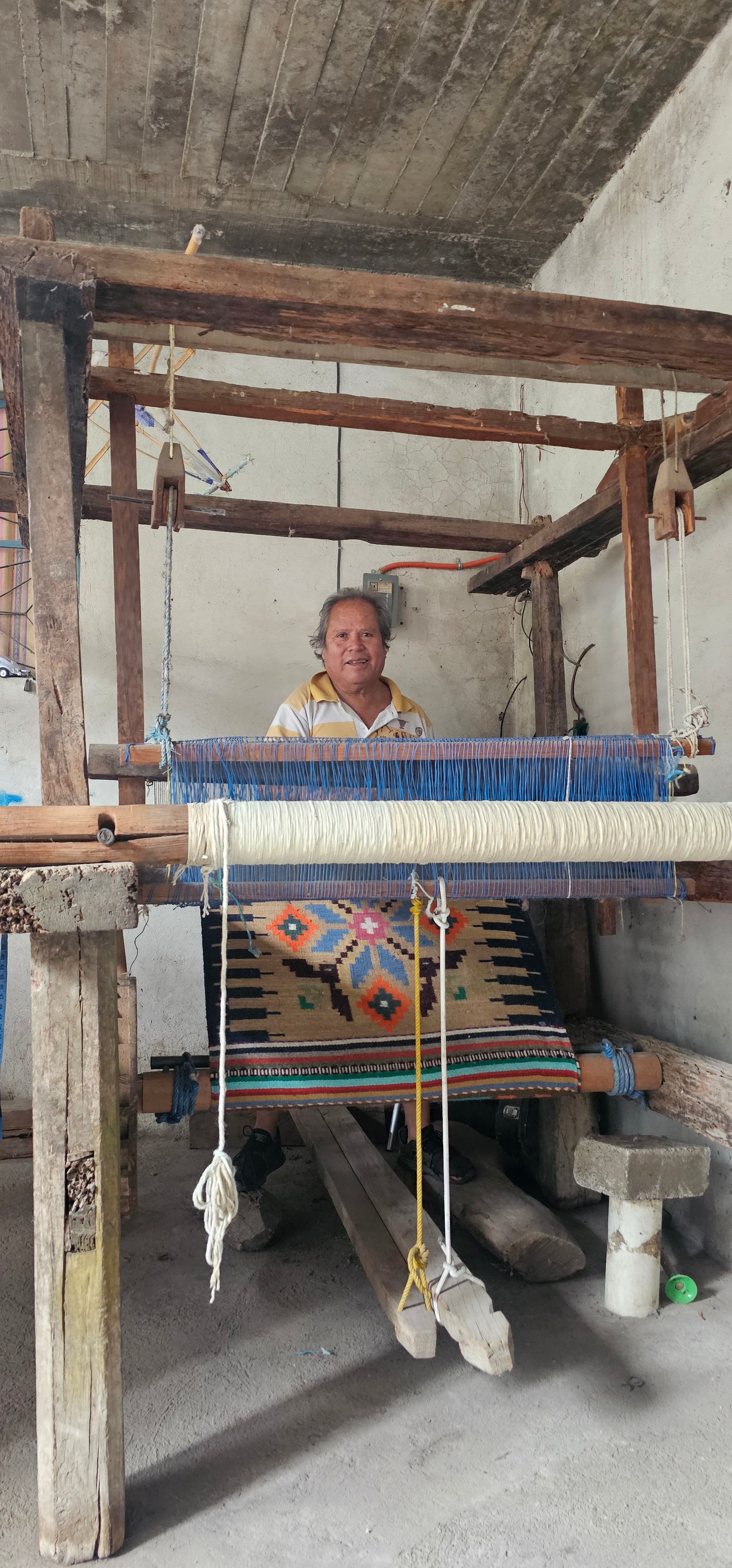 Shaá yu'ú? How are you grounded on earth? Size: 126x186cm; 4.1x6.1ft Weaver: Mario Bautista Martínez, Master weaver Price: $ 1,200 USD. Materials and methods: Beé (Dactylopius coccus costa, cochineal) for the red, salmon, pink...