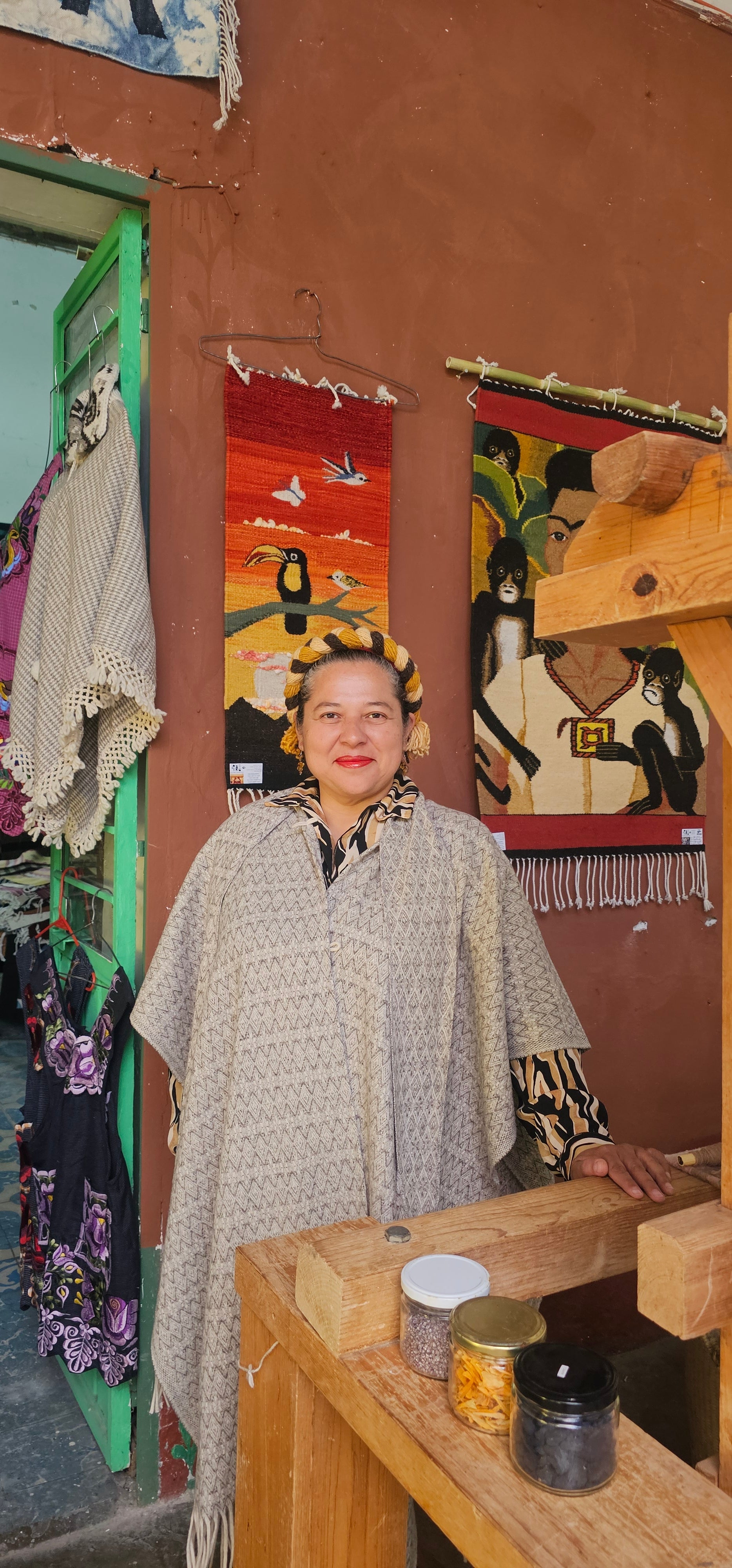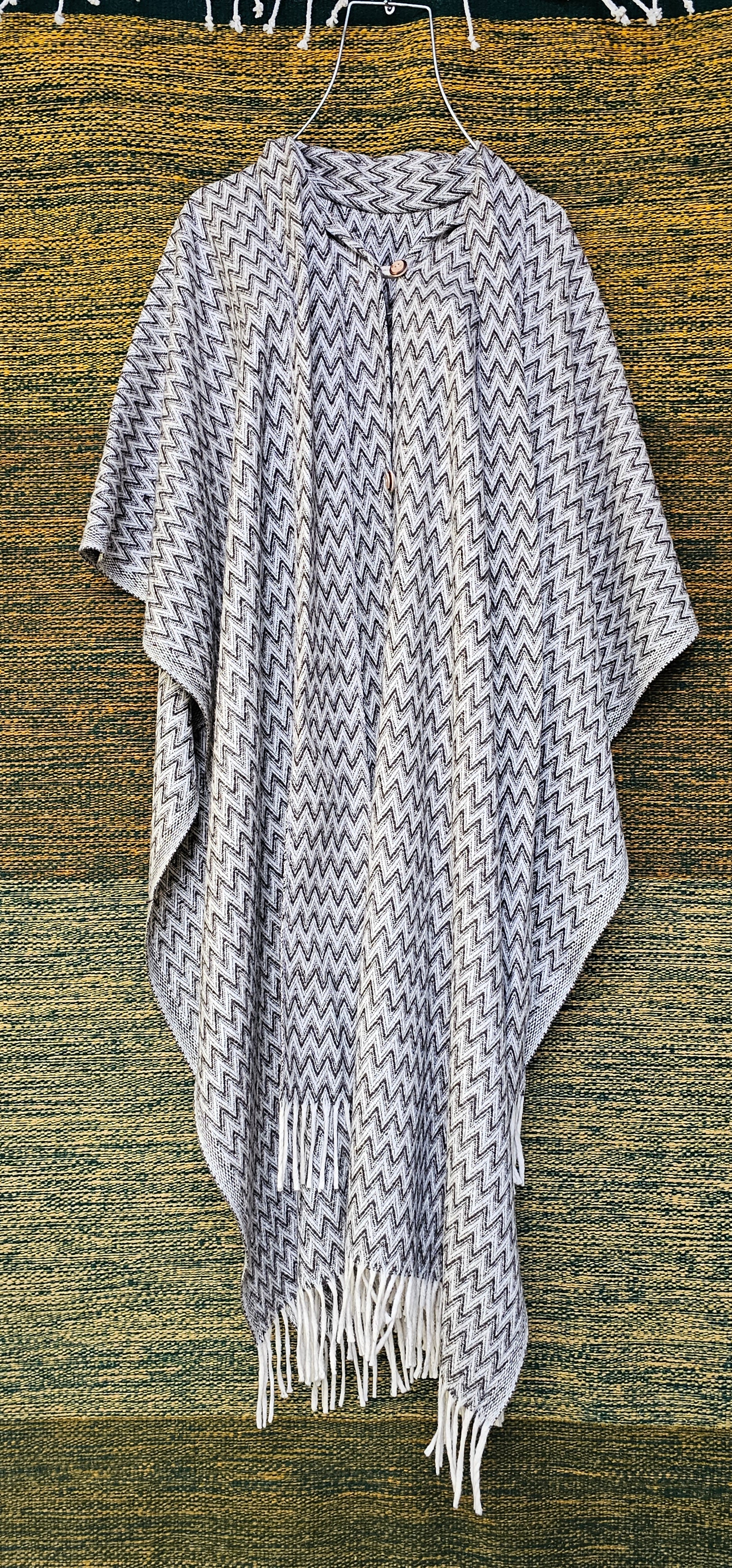 Size: 119cm, 43inches from shoulder to end. Materials and methods. Criollo sheep wool spun and woven in pedal looms in Santiago Tianguistengo. Natual wool colors. Weavers: Batalla family. Design, patterns...