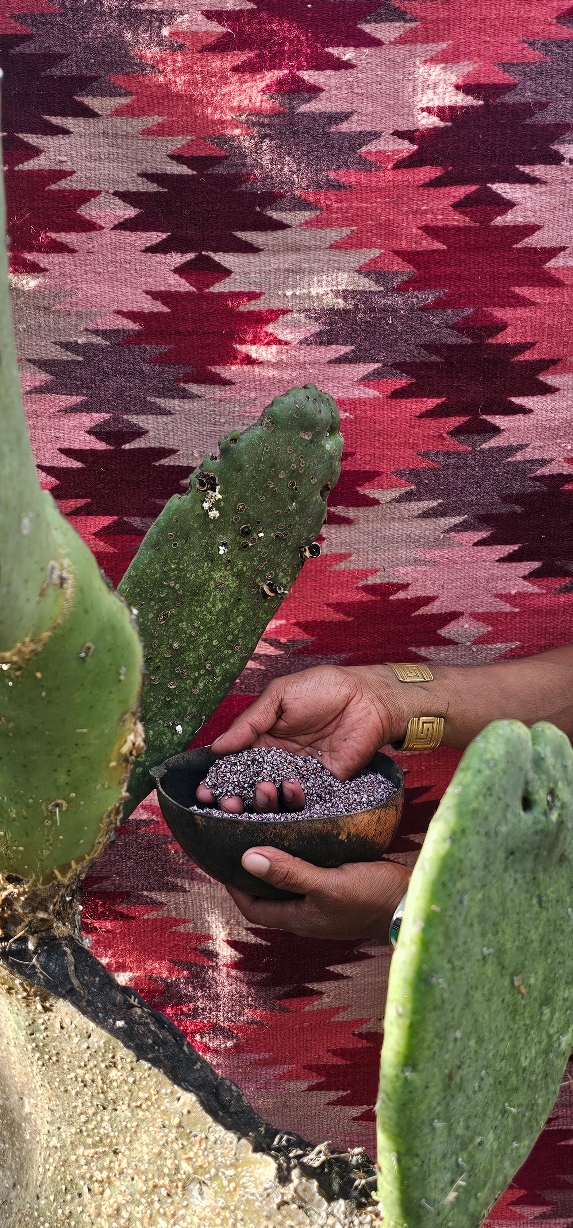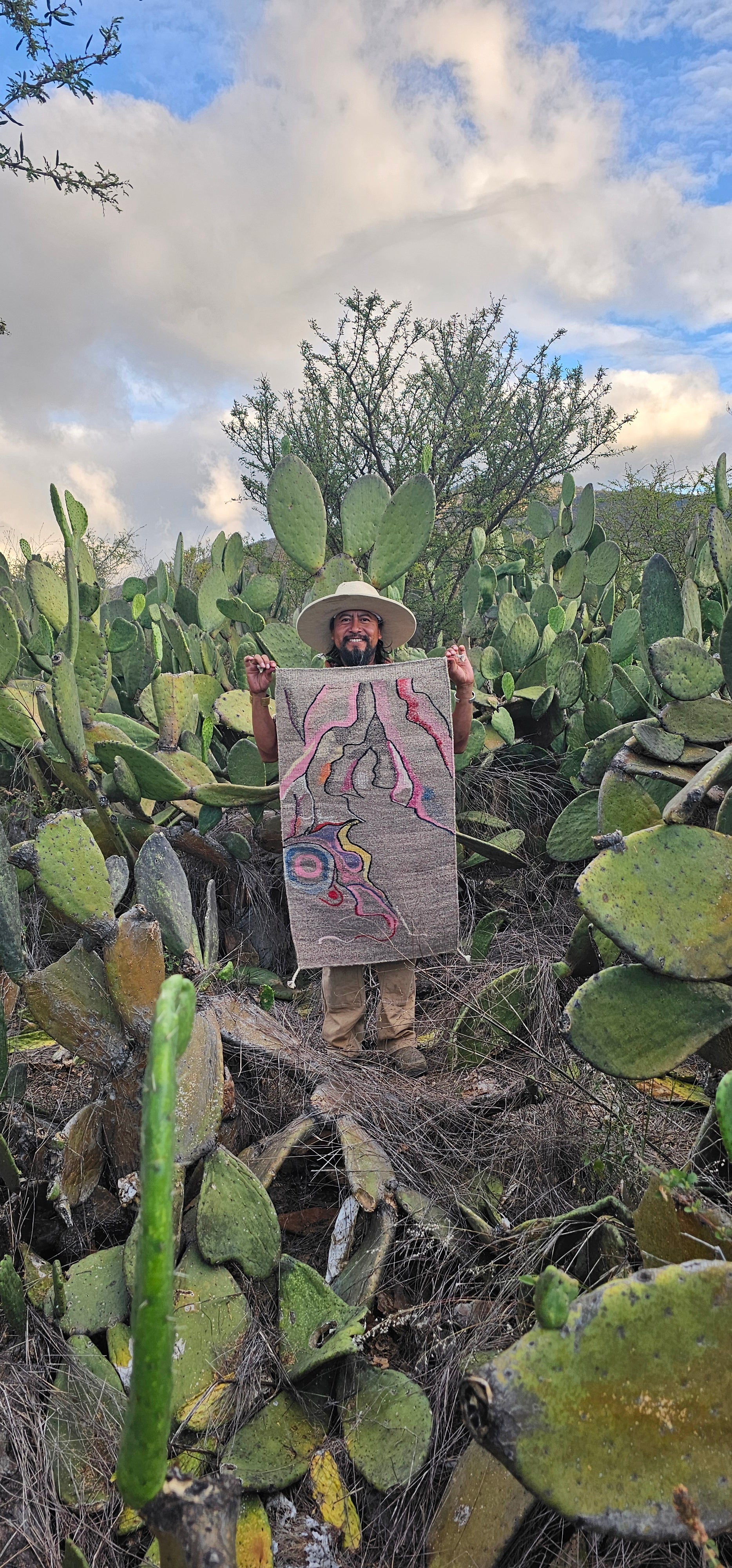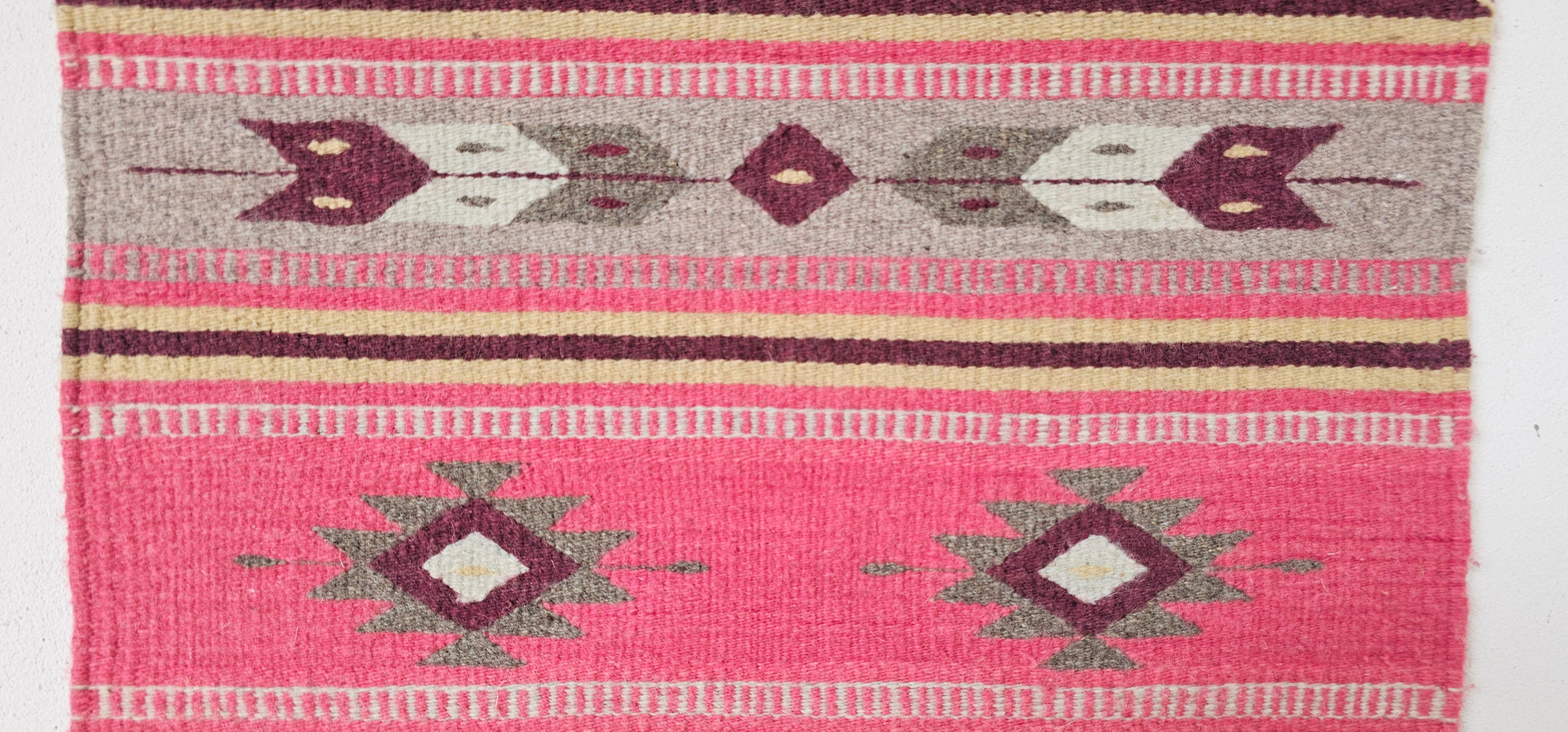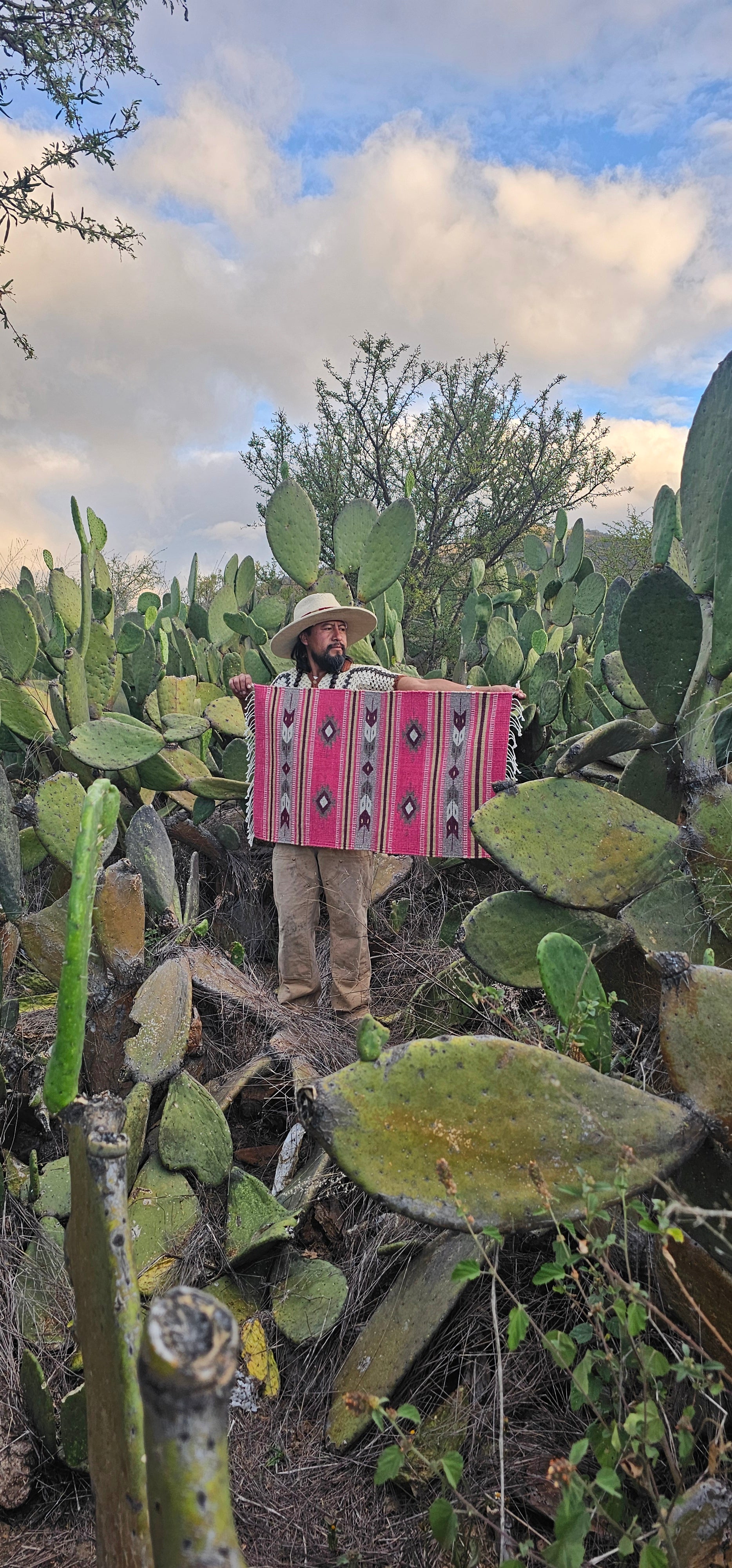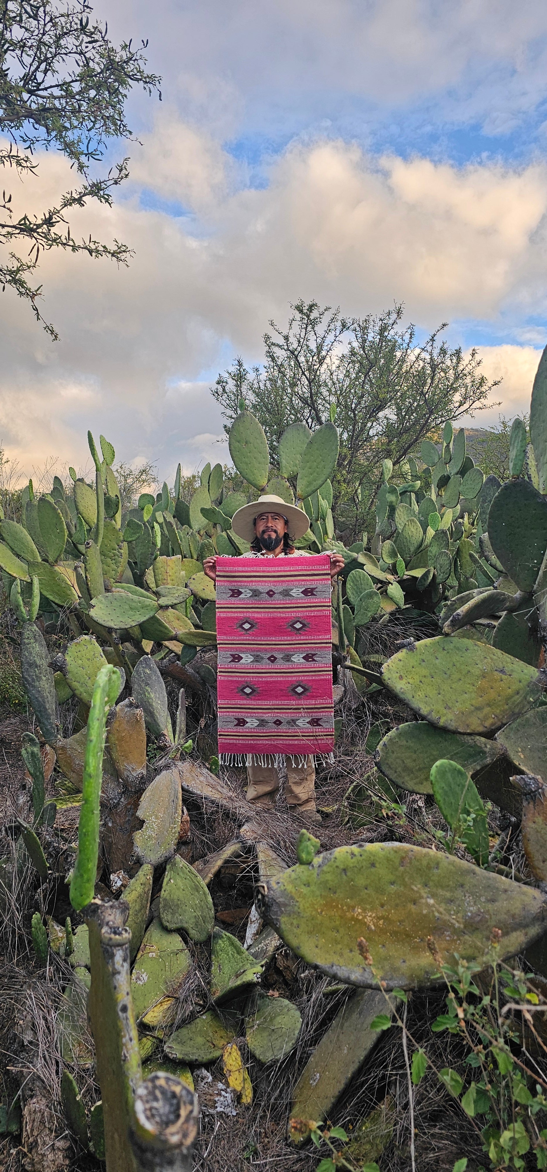 Size: 60x100cm; 2x3ft Weaver: Cristina, San Miguel del Valle Price: 150 USD Materials and methods: criollo sheep wool dyed with natural dyes: Beè (Dactylopius coccus Costa, cochineal), Yauhtli (Tagetes Lucida)...