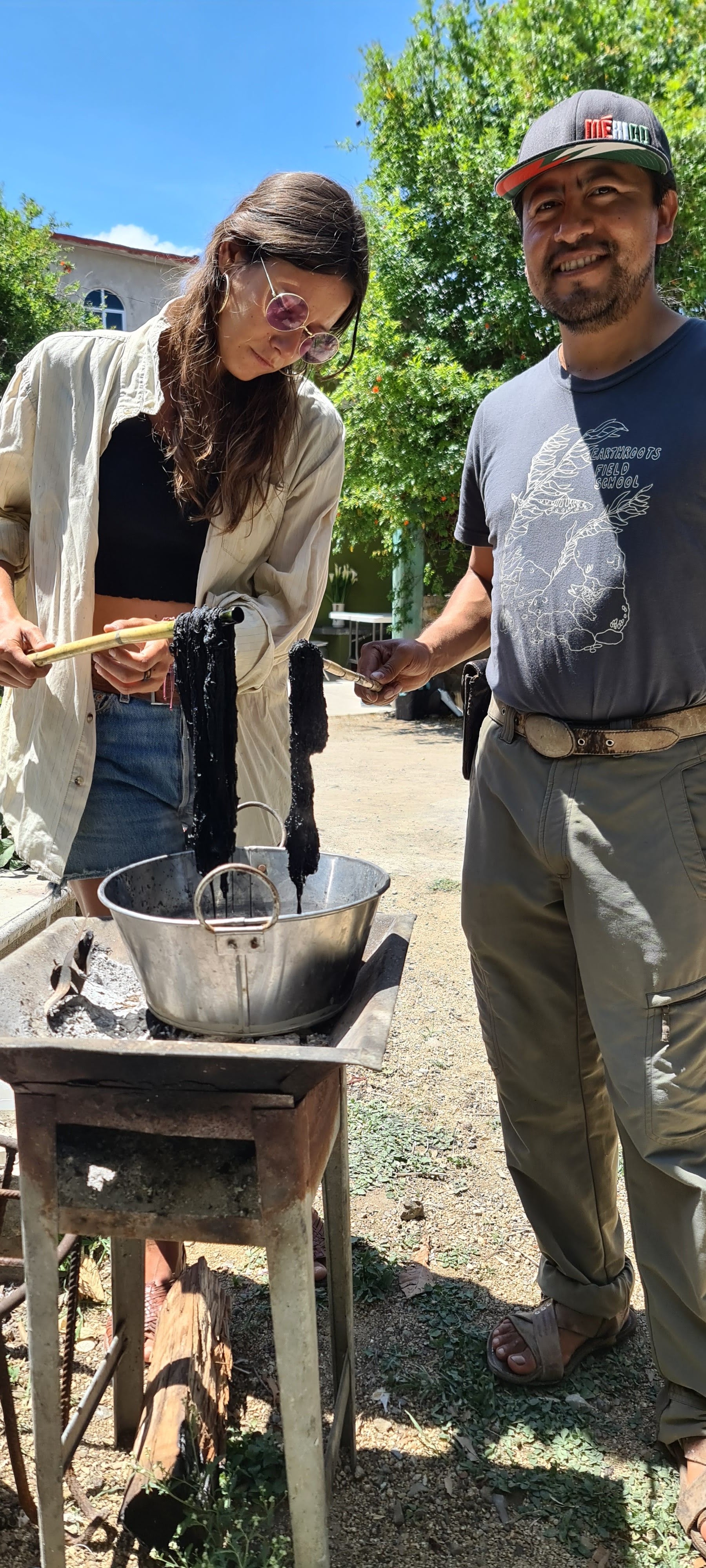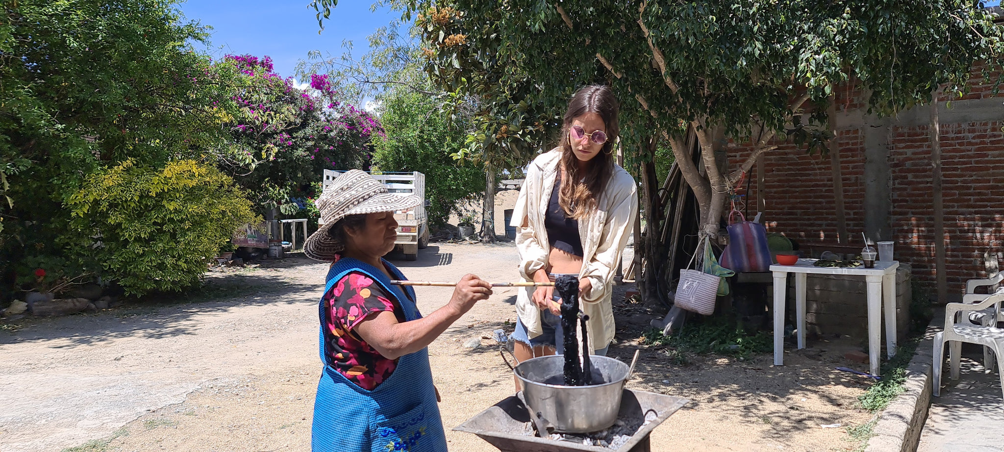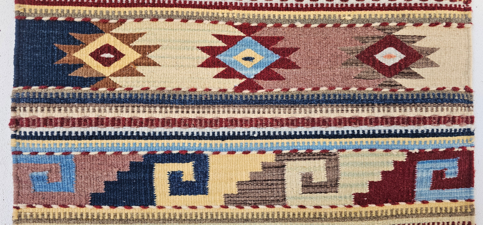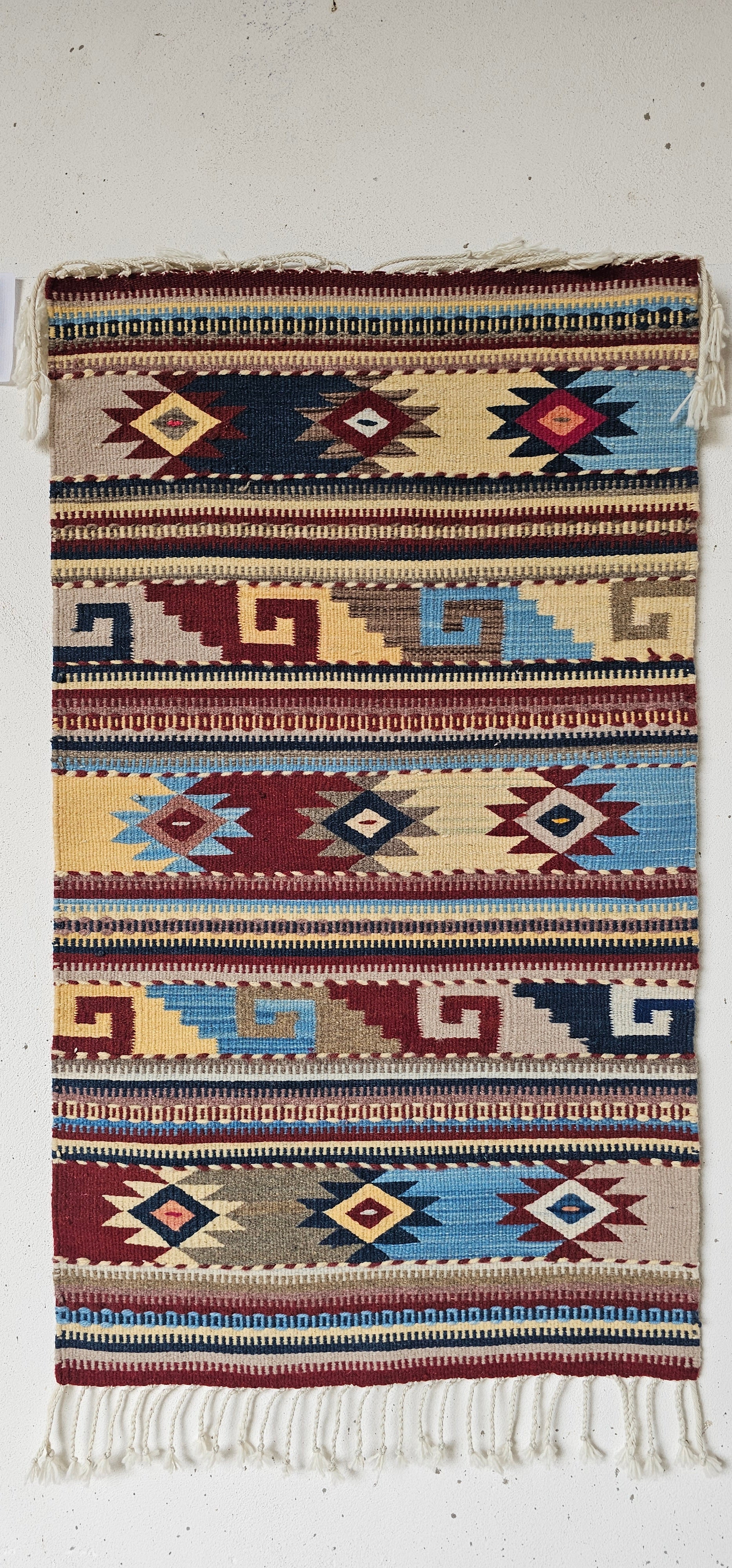 Size: 60x100cm; 2x3ft Weaver: Cristina, San Miguel del Valle Price: 150 USD Materials and methods: criollo sheep wool dyed with natural dyes: Beè (Dactylopius coccus Costa, cochineal), Yauhtli (Tagetes Lucida)...