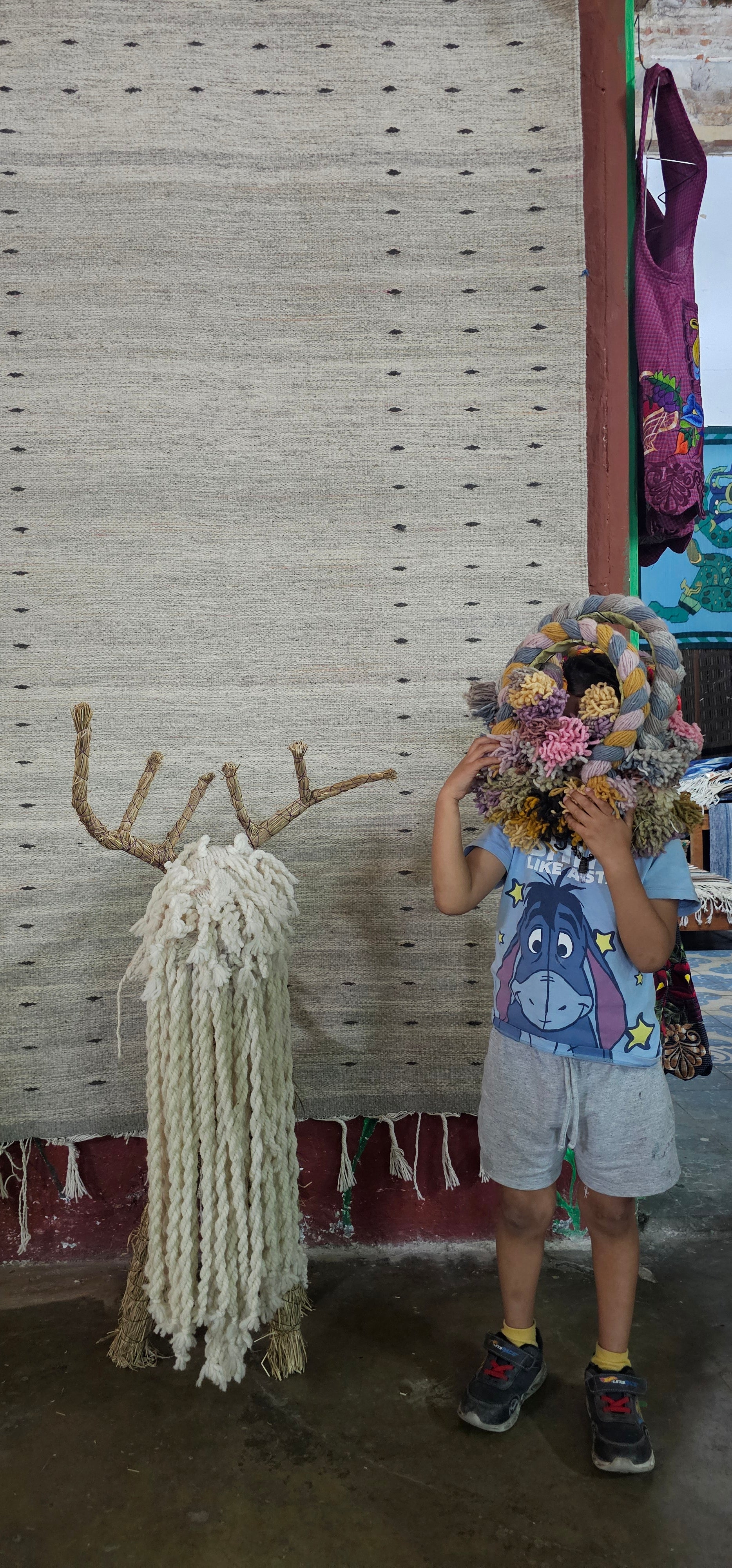 Indigo dyes on native criollo sheep wool.
